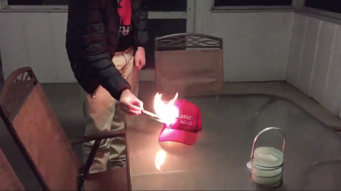Holy hell. The #burnmyMAGAhat makes me laugh. We go out and protest by marching. They burn their cheap ass hats. It's amazing. Such lazy.